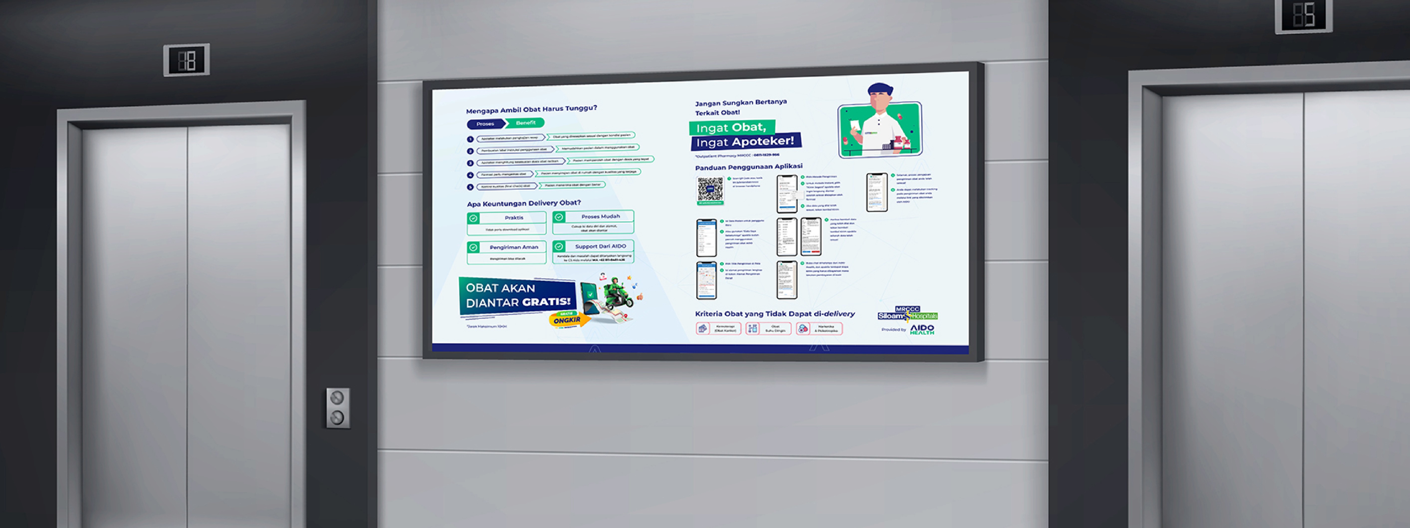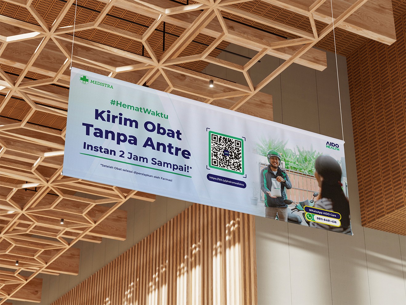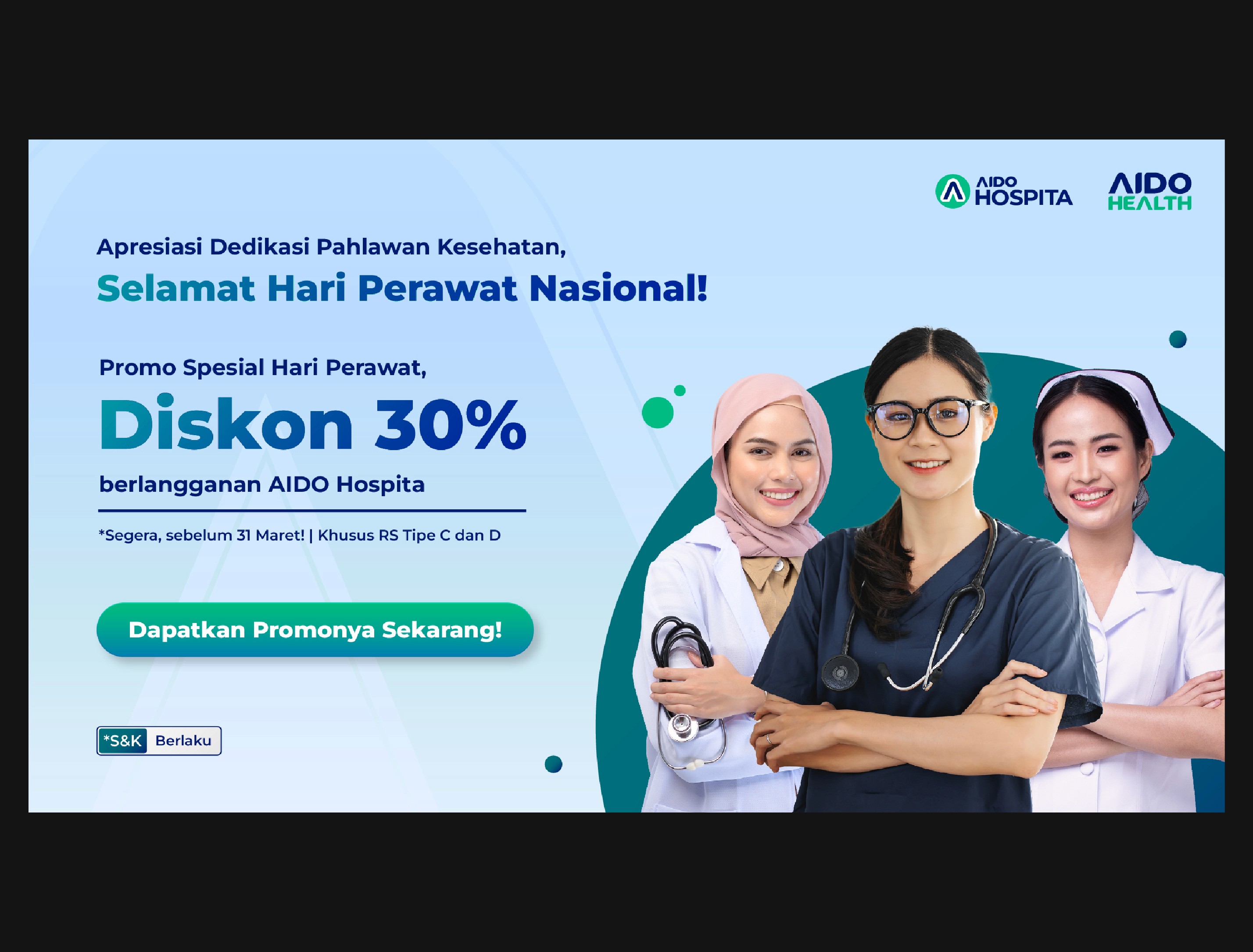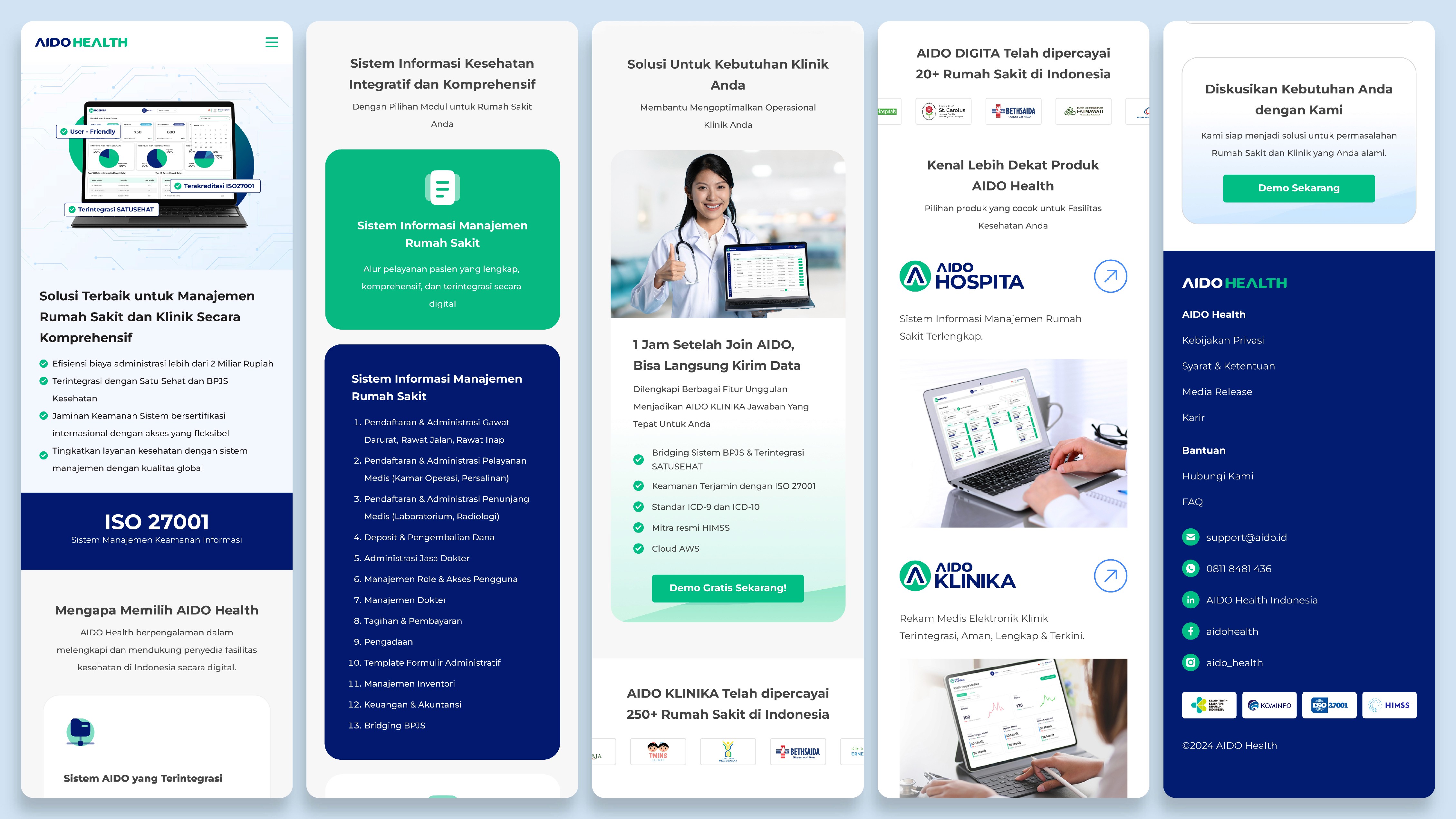 AIDO HOSPITA is a hospital management SaaS focusing on SIMRS and EMR. This design maintains consistency across print, and marketing materials. Clear print materials reflect healthcare standards, while marketing assets highlight key features with a unified brand identity.