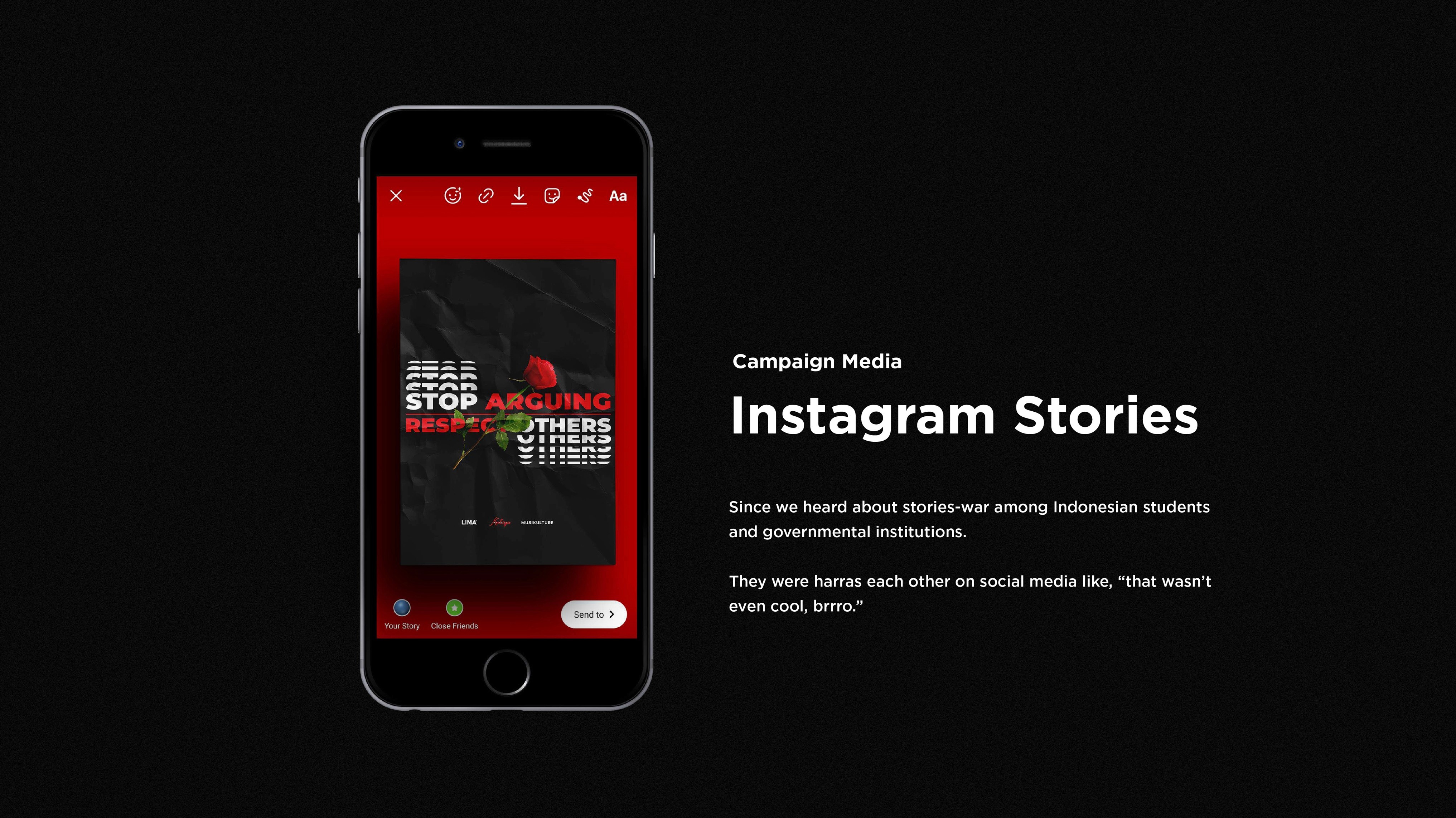 This campaign was created as a “distruption” among Instagram Stories war by 2019. The challange was to create something catchy and easy to understand. Focused to be reposted by people on instagram story, in the middle of twitter war, and distributed in the public demonstration place.